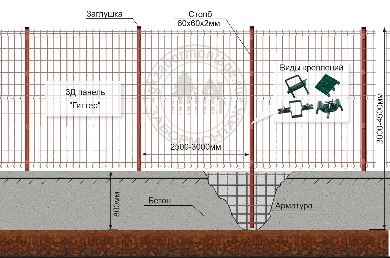 • Конструкция 3D-забора на ленточном фундаменте
